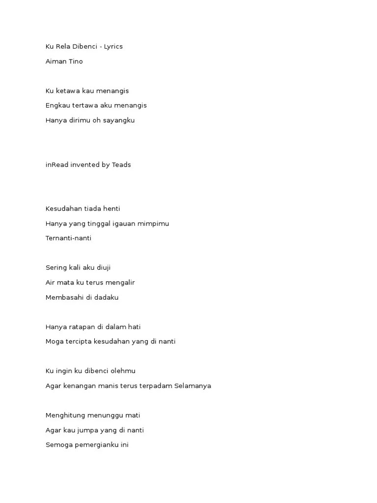 Chord Lagu Aiman Tino Ku Rela Dibenci / Chord Lagu Ku Rela Dibenci Aiman Tino Igat Us. Adakah aku disana engkau cintai…. Berikut chord kunci gitar versi mudah dan lirik lagu ku rela dibenci yang dipopulerkan aiman tino ·. Play along with guitar, ukulele, or piano with interactive . · ku tertawa · kau menangis. Capo di fret 2 intro am f g c dm e am ku tertawa em kau menangis.